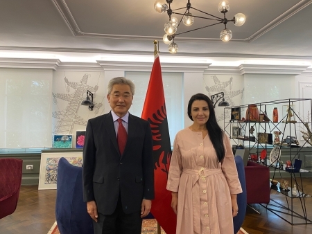 髙田大使のバルク・インフラ・エネルギー大臣訪問 令和3年7月7日 7月5日、髙田大使はバルク・インフラ・エネルギー大臣を訪問しました。髙田大使はバルク・インフラ・エネルギー大臣とアルバニアのエネルギー問題、円借款「ティラナ首都圏下水道整備事業」等について協議しました。