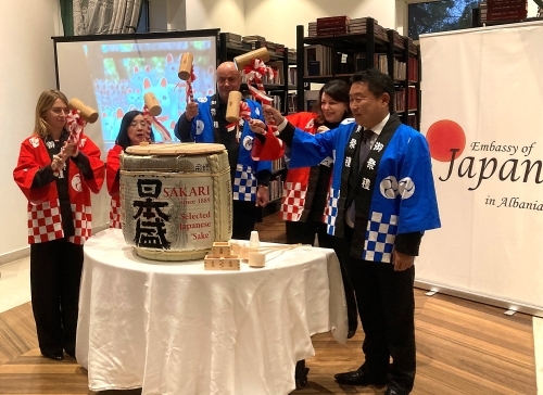 Pas seminarit, u zhvillua ceremonia tradicionale e hapjes së fuçisë së sakës e ndjekur nga një takim shoqëror ku mbi 60 pjesëmarrës patën mundësi të shijonin ushqime japoneze të përgatitura nga Shefja e Ambasadës, si dhe pije tradicionale japoneze si sake dhe verë, duke biseduar mbi kulturën dhe shoqërinë japoneze.