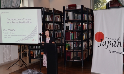 Ambasadorja Kato e hapi aktivitetin duke shprehur mirënjohjen e saj për z. Ken Toyoda, Drejtor i Zyrës së Organizatës Kombëtare të Turizmit të Japonisë (JNTO) në Romë, dhe z. Genti Beqiri, Menaxher Projekti në Qendrën Ndërkombëtare të Tregtisë në Shqipëri (ish-student i bursës së Ministrisë së Arsimit, Kulturës, Sportit, Shkencës dhe Teknologjisë në Japoni), për pjesëmarrjen e tyre.