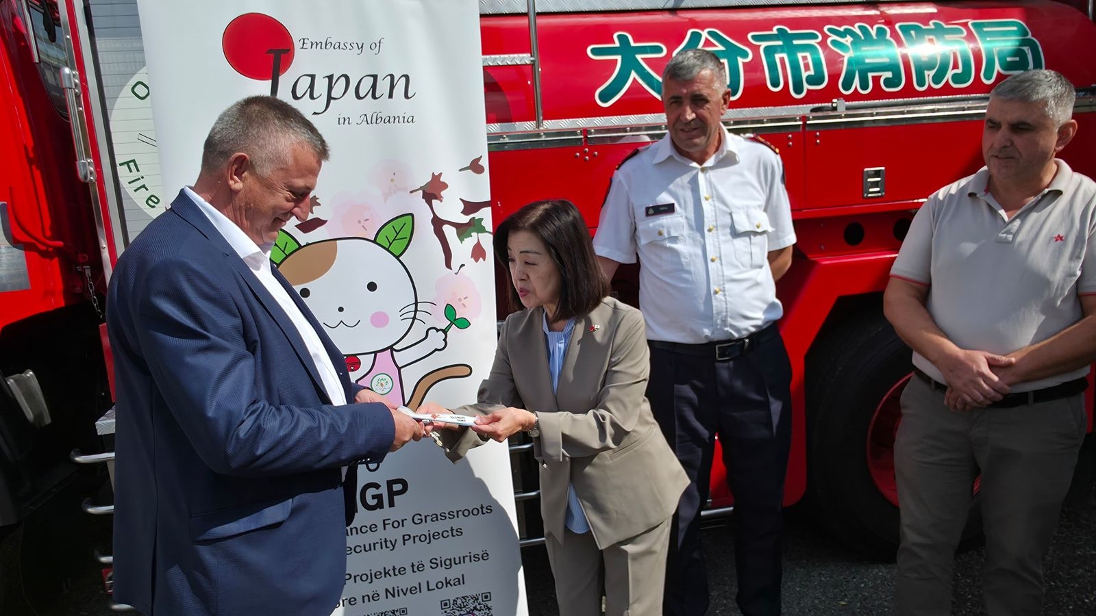 ※本案件は日本の中古消防車を外国に供与し、災害対応能力の向上に貢献することを目的としており、今回は大分市から譲渡された消防車が一般社団法人日本外交協会を通じてディブラ市に届けられました。