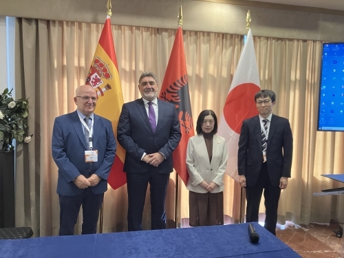 Gjithashtu, në fjalimet përshëndetëse morën pjesë edhe Profesori Merkoçi, Sh.T.Z. Gabriel Cremades, Ambasador i Spanjës në Shqipëri, si dhe Profesori Einaga (në këtë rend).