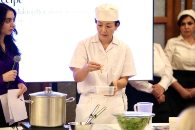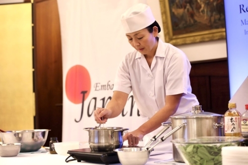 Më pas, shefja Miyashita shpjegoi dhe demonstroi përgatitjen e panna cotta-s me matcha, supës tradicionale ozoni dhe ëmbëlsirave me pastë fasule mochi.
