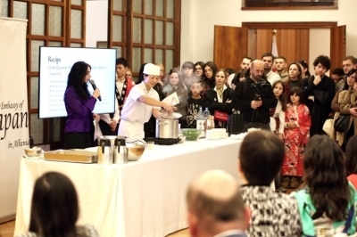 Gjithashtu, ambasadorja theksoi se znj. Kazumi Miyashita, shefja e kuzhinës në rezidencën e ambasadorit, do të prezantojë përgatitjen e ëmbëlsirave mochi dhe panna cotta me çaj jeshil matcha, duke përdorur përbërës që gjenden edhe në Shqipëri. Ajo shtoi se edhe stafi i ambasadës do të bëjë një demonstrim tradicional të rrahjes së mochit, duke shpresuar se të gjithë do ta shijojnë këtë përvojë së bashku. Ambasadorja shprehu gjithashtu dëshirën që ky aktivitet të kontribuojë në njohjen më të thellë të kuzhinës japoneze dhe të nxisë shkëmbimet kulturore përmes ushqimit.