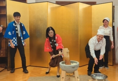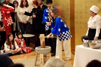 Vizitorët morën pjesë në rrahjen tradicionale të mochit, duke brohoritur “Yoisho!” gjatë procesit, duke krijuar një atmosferë të gjallë dhe festive. Mochi i përgatitur u shërbye me shtesa si pluhur soje (kinako), susam, ose në formën e supës ozoni, ndërsa panna cotta me matcha u degustua nga të pranishmit.
