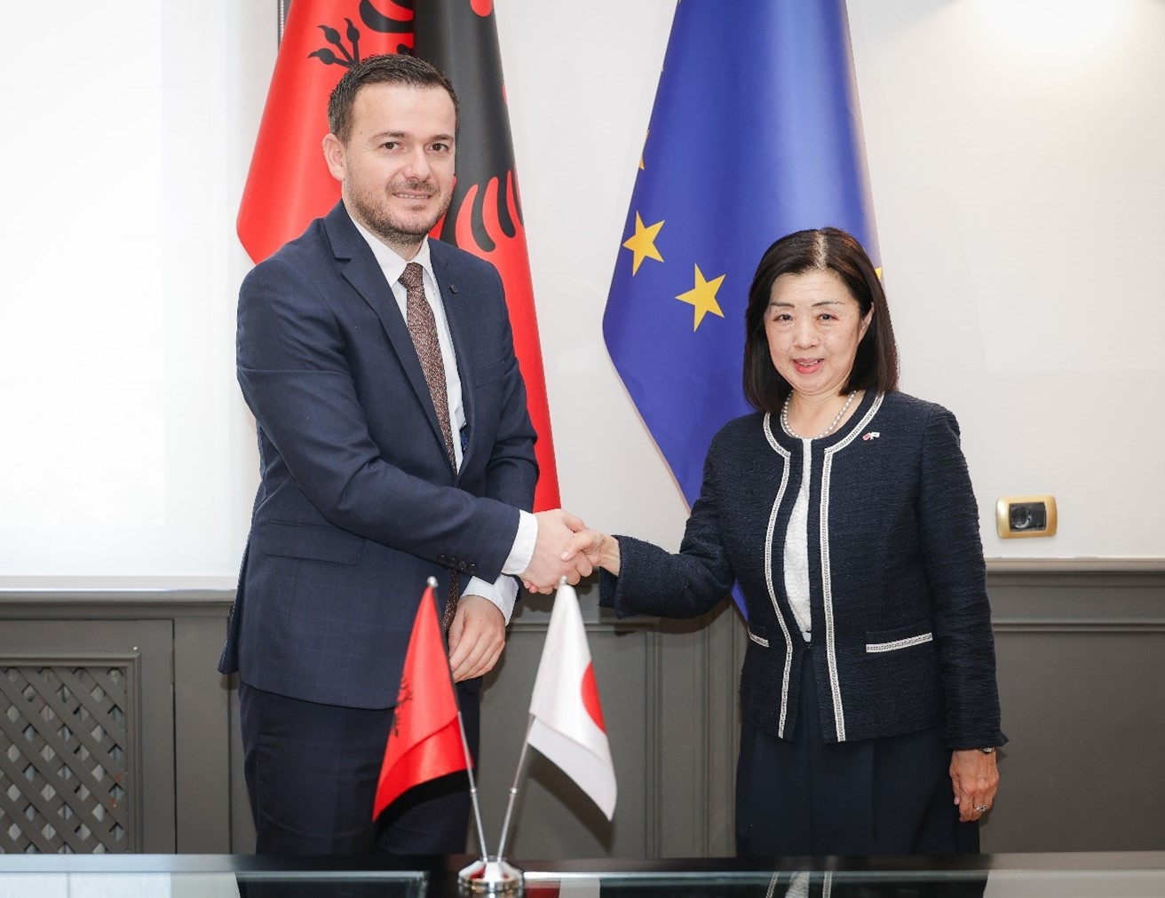 加藤大使のサラ農業・地方開発大臣表敬 令和7年10月29日 10月29日(水)、加藤大使は、サラ(Mr. Andis Salla)農業・地方開発大臣を農業・地方開発省にて表敬しました。 加藤大使は、サラ大臣との間で、同大臣のツェリク市長時代からの協力関係も想起しつつ、農業・地方開発分野での二国間関係の一層の発展に向けて、意見交換を行いました。