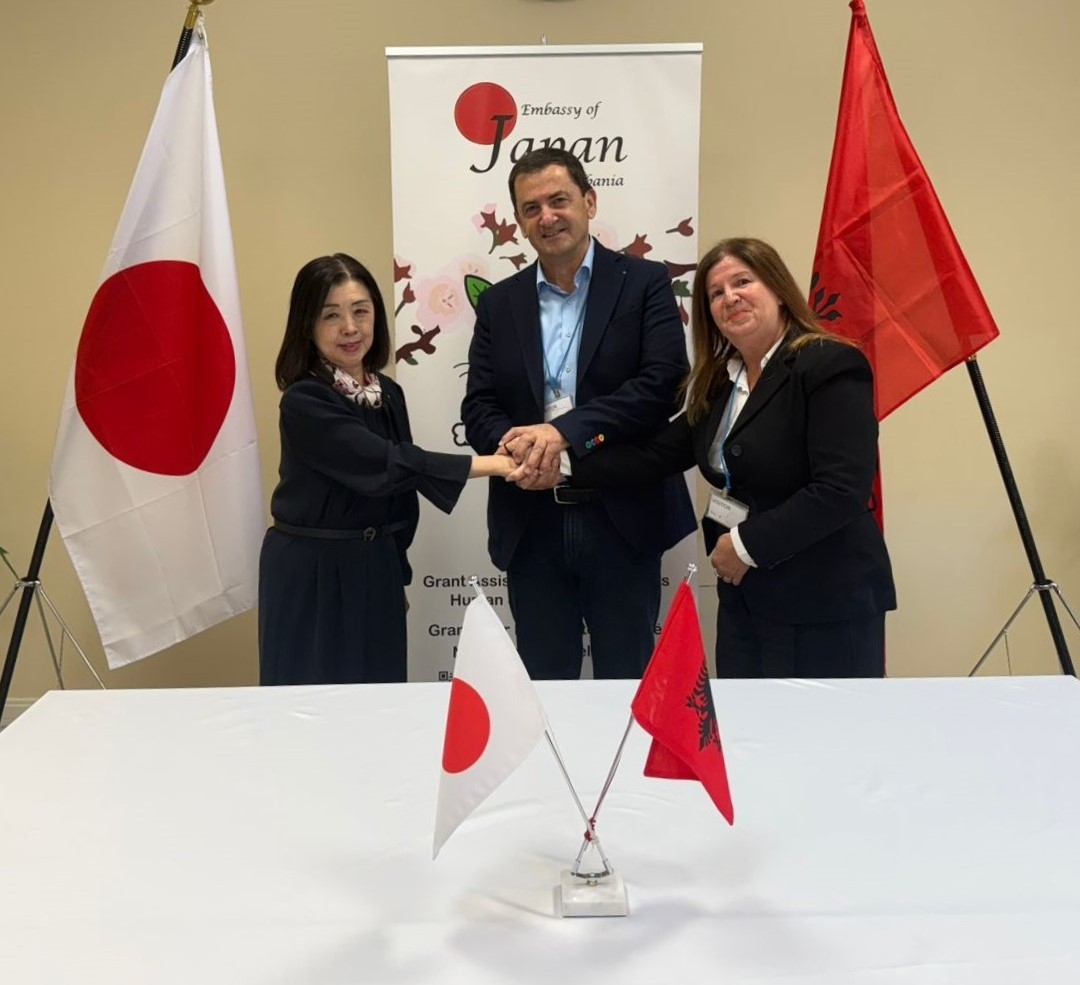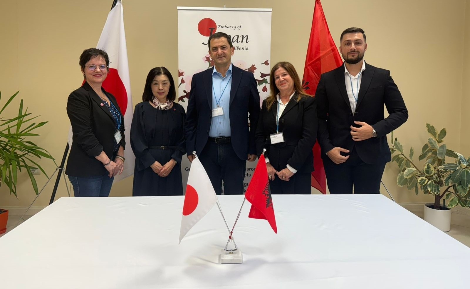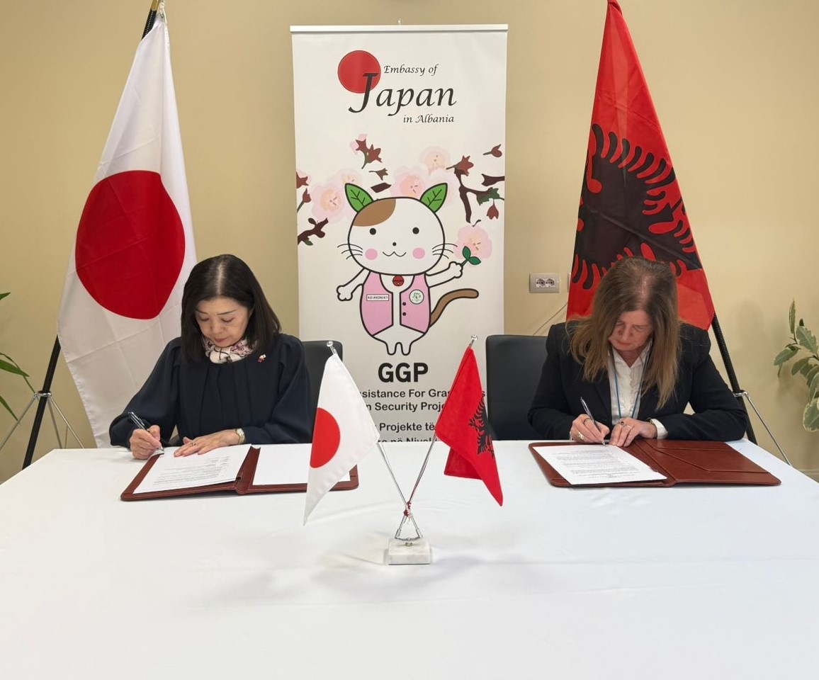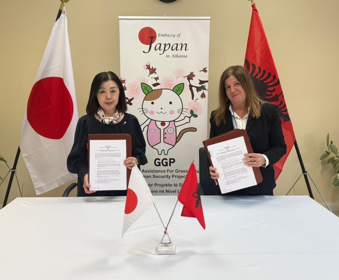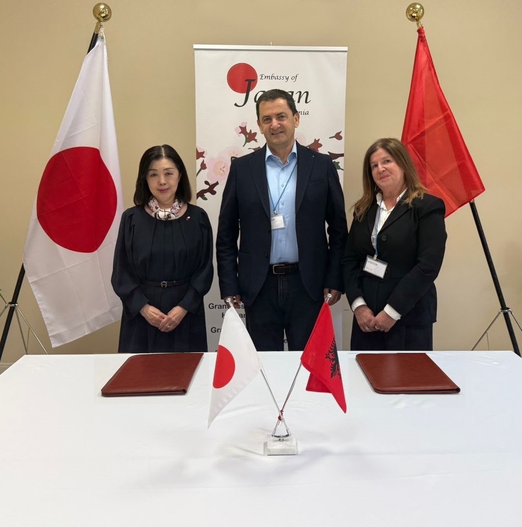 10月31日(金)、令和7年度草の根・人間の安全保障無償資金協力(GGP)「ヒマラ市生活道路整備用バックホー・ローダー整備計画」の贈与契約(G/C)に係る署名式を当館で行い、加藤大使とNGO「アウレダ」のコツィ(Ms. Mirela Koci)代表との間で贈与契約が締結されました。タヴォ(Mr. Vangjel Tavo)ヒマラ市長ほか同市関係者も同席しました。これにより、ヒマラ市に対してバックホー・ローダーが供与される予定です。