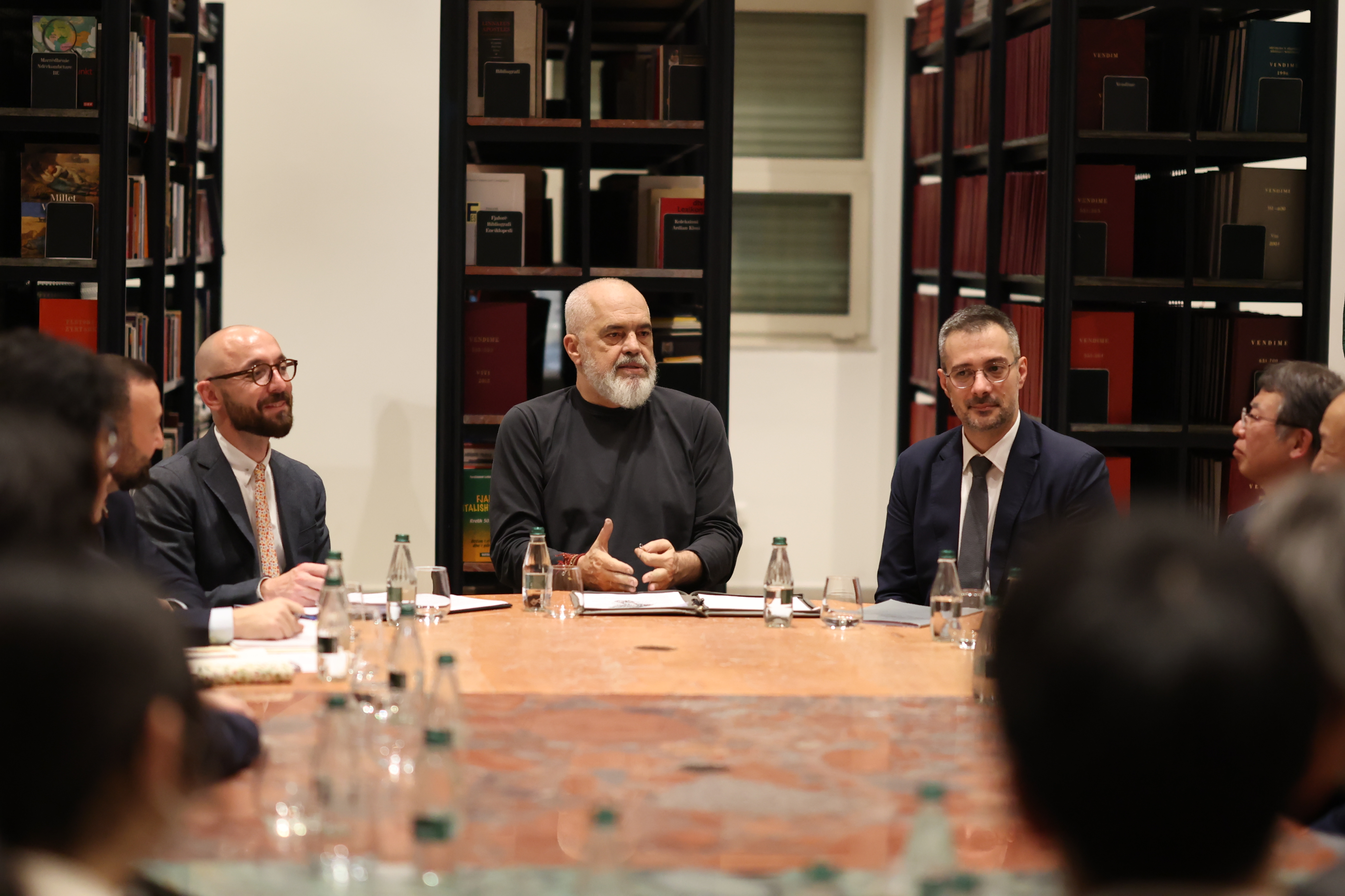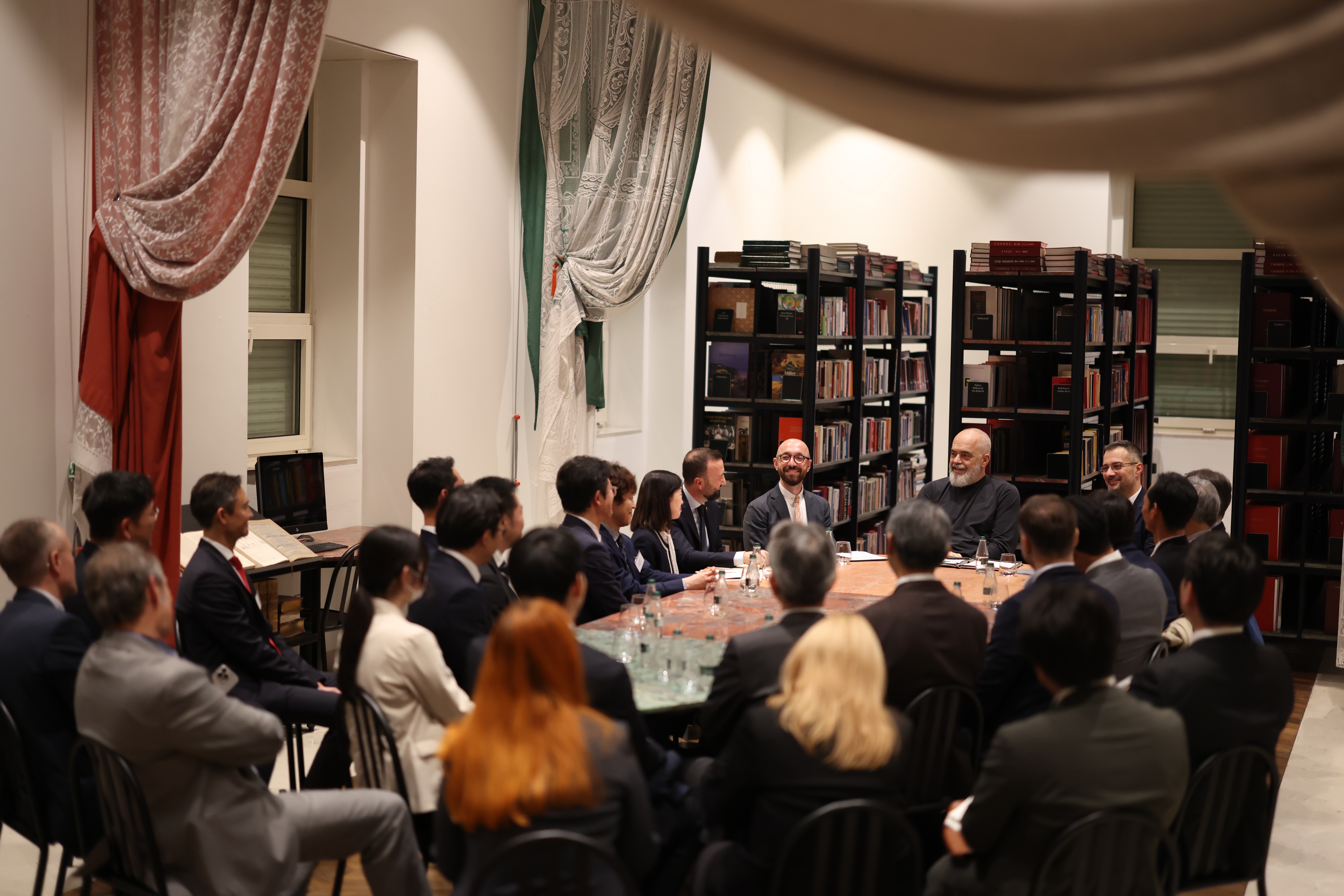 一行のラマ首相表敬には、ムチャ(H.E. Mr. Ermal Muca)在京アルバニア大使、カディウ(Mr. Besjan Kadiu)インフラ・エネルギー省副大臣及びムサベリウ(Mr. Enkelejd Musabelliu)経済・イノベーション省副大臣も同席されました。