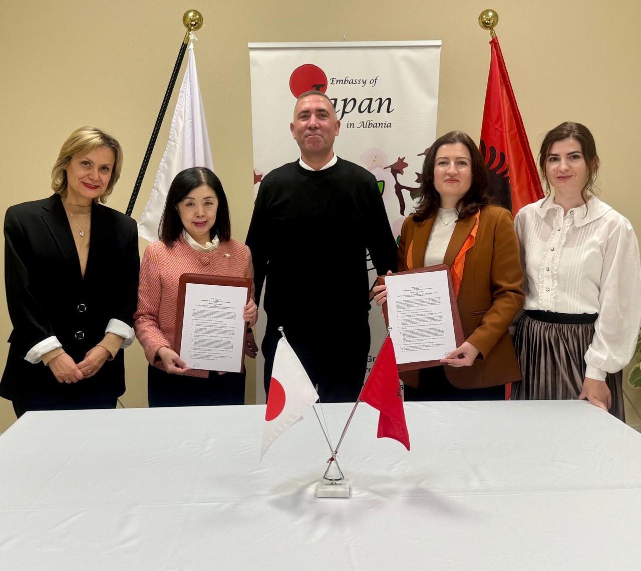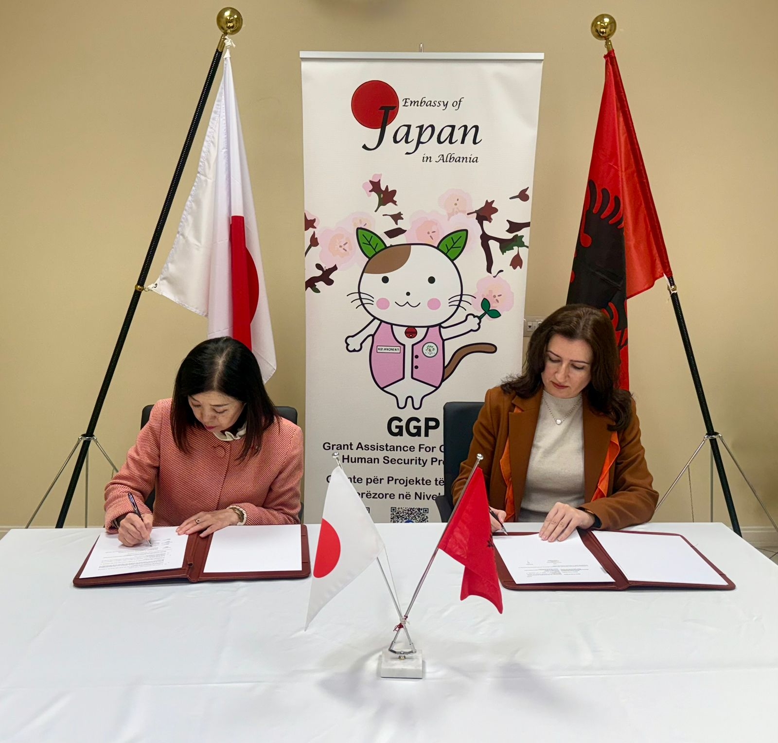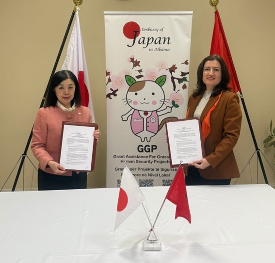 令和7年度草の根・人間の安全保障無償資金協力「ドゥラス市イスメト・ナヌシ学校太陽光発電システム整備計画」贈与契約(G/C)の署名