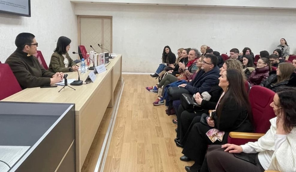 クロミダ(Prof. Dr. Esmeralda Kromidha)外国語学部学部長も出席して行われた講義には、学生の他、外国語学部講師陣も参加し、熱心に傍聴していました。