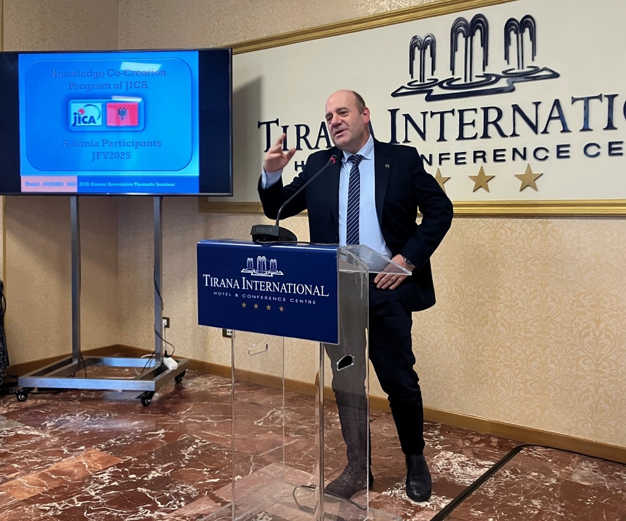 Në vijim, z. Sokol Konomi, Koordinator Teknik i JICA-s, prezantoi objektivat dhe strukturën e programit të trajnimeve të JICA-s, mbi bazën e të cilave gjashtë pjesëmarrës, kryesisht nga programi i trajnimeve 2025, paraqitën prezantime mbi rezultatet e trajnimeve të tyre përkatëse.