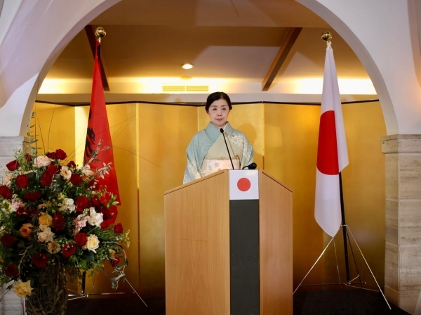 Më pas, Ambasadorja mbajti një fjalim, gjatë të cilit bëri një përmbledhje të veprimtarive të Ambasadës dhe ecurisë së marrëdhënieve Japoni–Shqipëri në vitin 2025, përfshirë vizitën e parë në Shqipëri të misionit të biznesit të JETRO-s dhe vizitën e dytë të Dhomës së Tregtisë dhe Industrisë Shqipëri–Japoni. Ajo gjithashtu shprehu angazhimin e saj për të punuar për forcimin e mëtejshëm të marrëdhënieve dypalëshe në fusha të ndryshme.