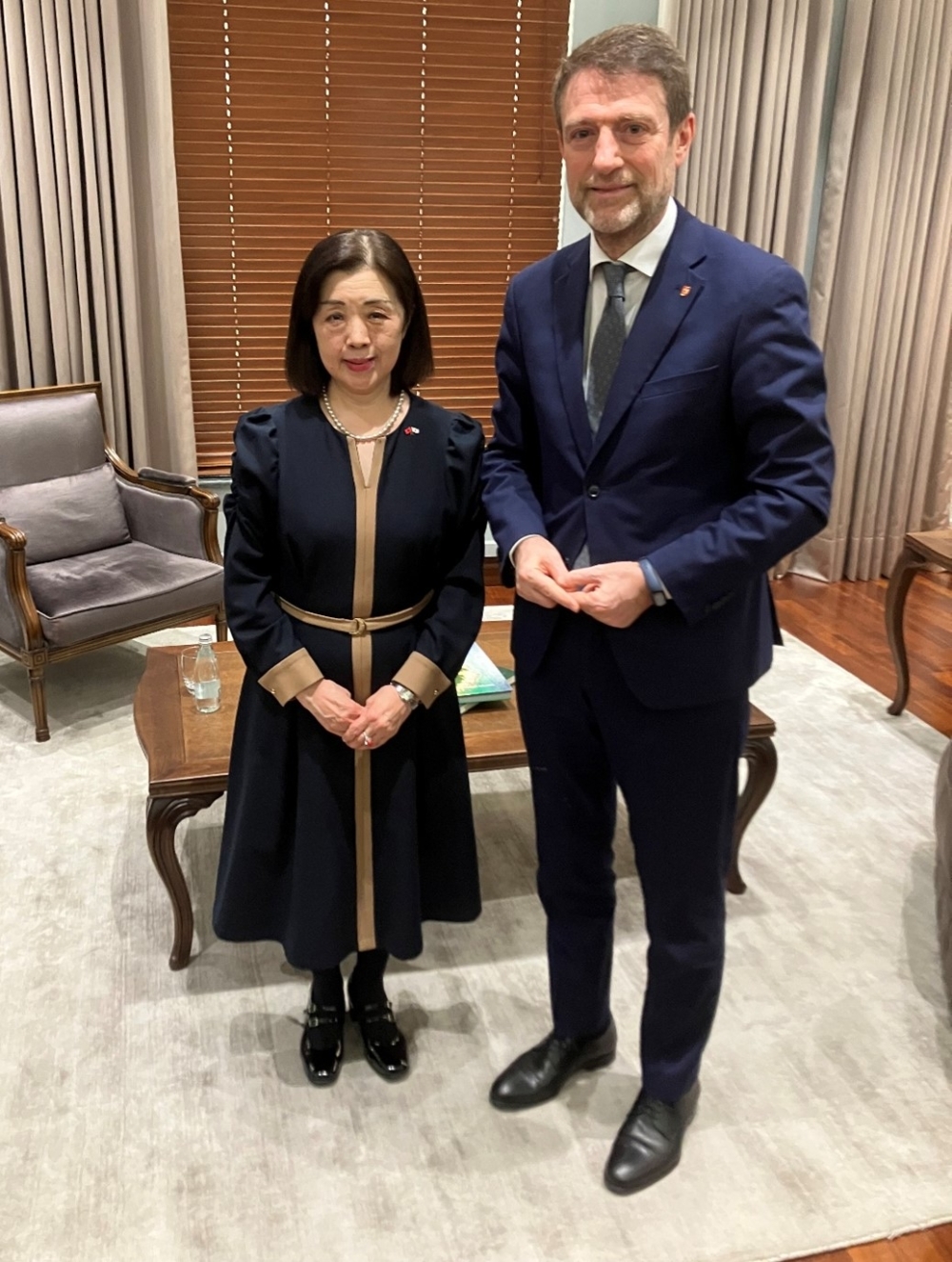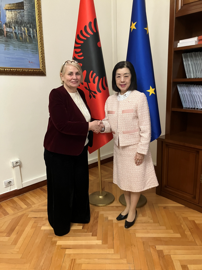more Embassy Guide Office Hours Holidays Consular Services Visa Photo Topics Ambasadorja Kato zhvillon vizitë kortezie me Ministrin për Evropën dhe Punët e Jashtme, Hoxha Ceremonia e dorëzimit të pajisjes në Bashkinë Klos (FY2024: Grante për Projekte të Sigurisë Njerëzore në Nivel Lokal) Ambasadorja Kato zhvillon një vizitë kortezie me znj. Milva Ekonomi Ambasadorja Kato zhvillon takim kortezie me Ministrin e Mbrojtjes Nufi Forumi i Dytë i Biznesit Shqipëri–Japoni Drejtori Shimizu i Institutit të Kulturës Japoneze në Romë zhvilloi një vizitë kortezie me Znj. Pipa, Zëvendësministre e Turizmit, Kulturës dhe Sportit #LeadBalkans – Liderët Rajonalë të Diasporës 26 Shkurt 2026 Pritje me rastin e Ditëlindjes së Perandorit Z. Seiichiro Taguchi, Ambasador përgjegjës për çështjet e Ballkanit Perëndimor (Këshilltar, Byroja për Çështjet Evropiane, Ministria e Punëve të Jashtme të Japonisë), dhe z. Obradovic, Sekretar i Përgjithshëm i Organizatës Rajonale për Bashkëpunimin Rinor të Ballkanit Perëndimor hkëmbyen pikëpamje mbi çështjet me interes të përbashkët Ambasadorja Kato në leksion të hapur në Universitetin Bedër Topics go to list 2026/4/2 Ambasadorja Kato zhvillon vizitë kortezie me Ministrin për Evropën dhe Punët e Jashtme, Hoxha Ceremonia e dorëzimit të pajisjes në Bashkinë Klos (FY2024: Grante për Projekte të Sigurisë Njerëzore në Nivel Lokal) 2026/4/1 Ambasadorja Kato zhvillon një vizitë kortezie me znj. Milva Ekonomi, Kryetare e Komisionit për Ekonominë, Punësimin dhe Financat në Kuvendin e Shqipërisë 2026/3/31 Ambasadorja Kato zhvillon takim kortezie me Ministrin e Mbrojtjes Nufi 2026/3/25 Forumi i Dytë i Biznesit Shqipëri–Japoni 2026/3/9 Drejtori Shimizu i Institutit të Kulturës Japoneze në Romë zhvilloi një vizitë kortezie me Znj. Pipa, Zëvendësministre e Turizmit, Kulturës dhe Sportit 2026/2/27 #LeadBalkans – Liderët Rajonalë të Diasporës 26 Shkurt 2026 2026/2/19 Pritje me rastin e Ditëlindjes së Perandorit 2026/2/18 Z. Seiichiro Taguchi, Ambasador përgjegjës për çështjet e Ballkanit Perëndimor (Këshilltar, Byroja për Çështjet Evropiane, Ministria e Punëve të Jashtme të Japonisë), dhe z. Obradovic, Sekretar i Përgjithshëm i Organizatës Rajonale për Bashkëpunimin Rinor të Ballkanit Perëndimor hkëmbyen pikëpamje mbi çështjet me interes të përbashkët 2026/2/11 Ambasadorja Kato në leksion të hapur në Universitetin Bedër 2026/2/6 Ambasadorja Kato mori pjesë në Takimin e ish-pjesëmarrësve Shqiptarë të Programit MIRAI 2026/2/5 Vizitë kortezie nga znj. Macdonald, Koordinatore e Përhershme e Kombeve të Bashkuara në Shqipëri 2026/2/2 Nënshkrimi i Kontratës së Grantit për“Projektin për Rikonstruksionin e një Jetimoreje në Bashkinë Shkodër, në kuadër të skemës së Granteve për Projekte të Sigurisë Njerëzore në Nivel Lokal për vitin fiskal 2025” 2026/1/30 Ambasadorja Kato mori pjesë në sesionin e raportimit, të organizuar nga Shoqata JICA Alumni Shqipëri (JAAA) 2026/1/29 Ambasadorja Kato zhvillon vizitë kortezie me znj. Spahiu, Nënkryetare e Kuvendit të Shqipërisë. 2026/1/20 Pjesëmarrja e Ambasadores Kato në Mbledhjen e Bordit të Dhomës së Tregtisë dhe Industrisë Shqipëri–Japoni 2026/1/16 Shkëmbim idesh me z. Obradovic, Sekretar i Përgjithshëm i Organizatës Rajonale për Bashkëpunimin Rinor të Ballkanit Perëndimor (RYCO) 2026/1/15 Ambasadorja Kato mban një leksion të hapur në Universitetin e Tiranës. 2026/1/9 Nënshkrimi i Kontratës së Grantit për “Projektin për Sigurimin e Pajisjeve të Specializuara për Realizimin e Protezave dhe Ortezave në Tiranë” në kuadër të skemës së “Granteve për Projekte të Sigurisë Njerëzore në Nivel Lokal për vitin fiskal 2025”. 2026/1/8 Ambasadorja Kato zhvilloi një vizitë kortezie me Sh.S. Prof. Dr. Sala, Ministre e Shëndetësisë dhe Mirëqenies Sociale. go to list Announcements close Foreign national coexistence policies [218KB] Preventive Measures in japan Border measures to prevent the spread of novel coronavirus (COVID-19) Application for Japanese passports of minors KATO Kikuko Ambassador of Japan to Albania Mesazhi i Ambasadores KATO Kikuko CV e Ambasadores KATO Aktivitete të Ambasadorit SNS close